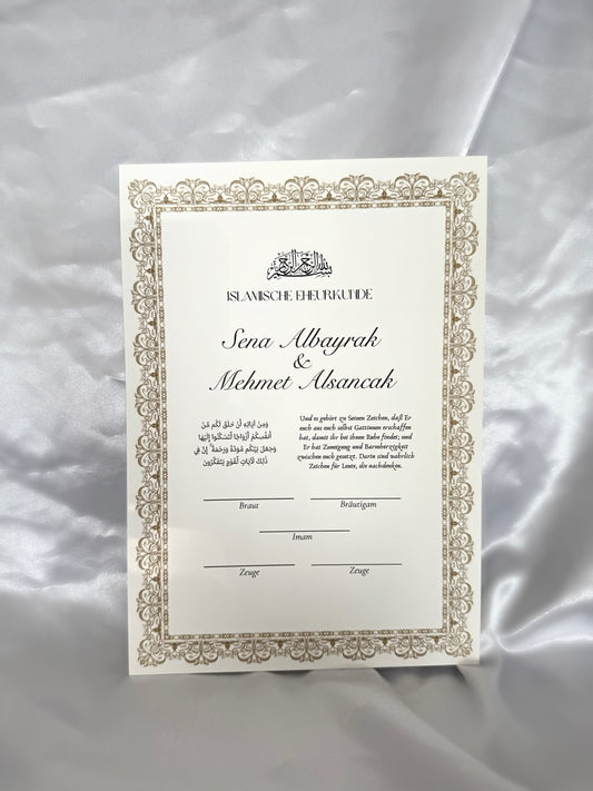 Nikah Zertifikat braun — A3 / Rahmen Weiß