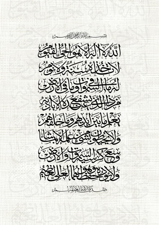 Ayatul Kursi schwarz mit Blumen — A3 / Rahmen weiß
