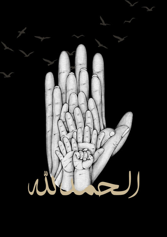 Islamisches Familienposter mit Händen in schwarz