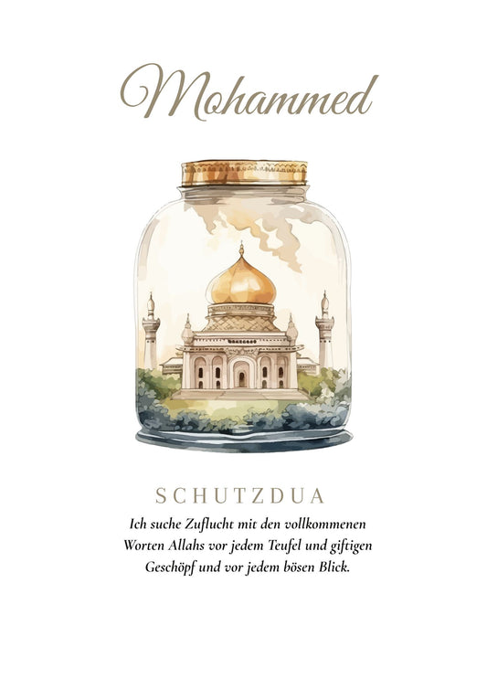 Personalisiertes Kinderposter mit Moschee und Schutzdua