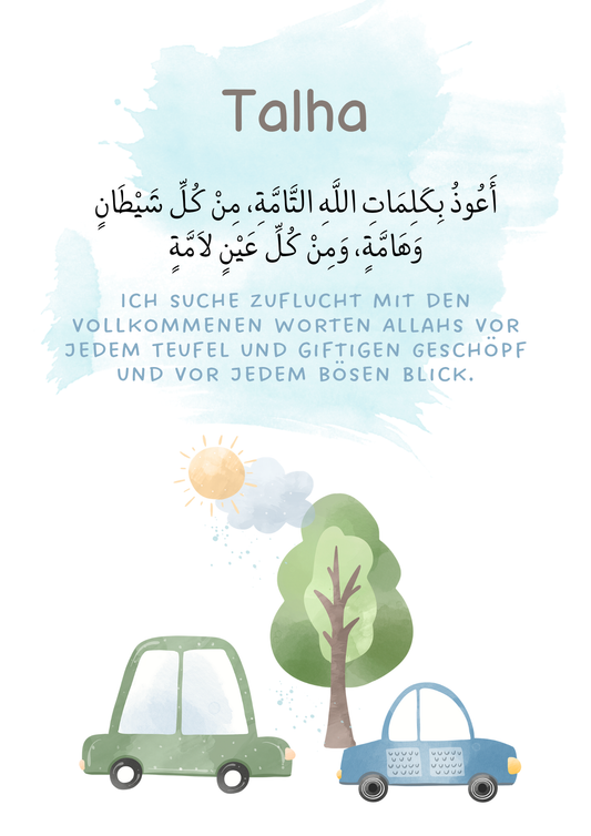 Personalisiertes Kinderposter mit Moschee und Schutzdua