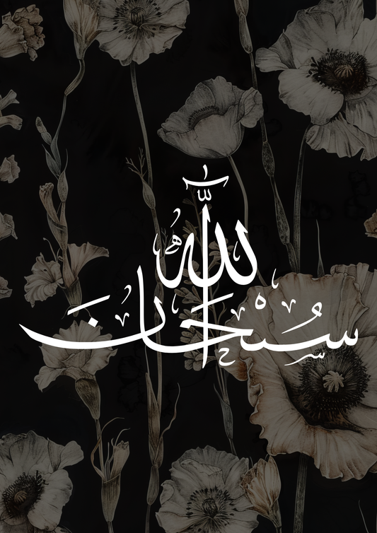 Schwarz-weißes Posterset mit den Worten Subhanallah, Alhamdulillah und Allahu Akbar