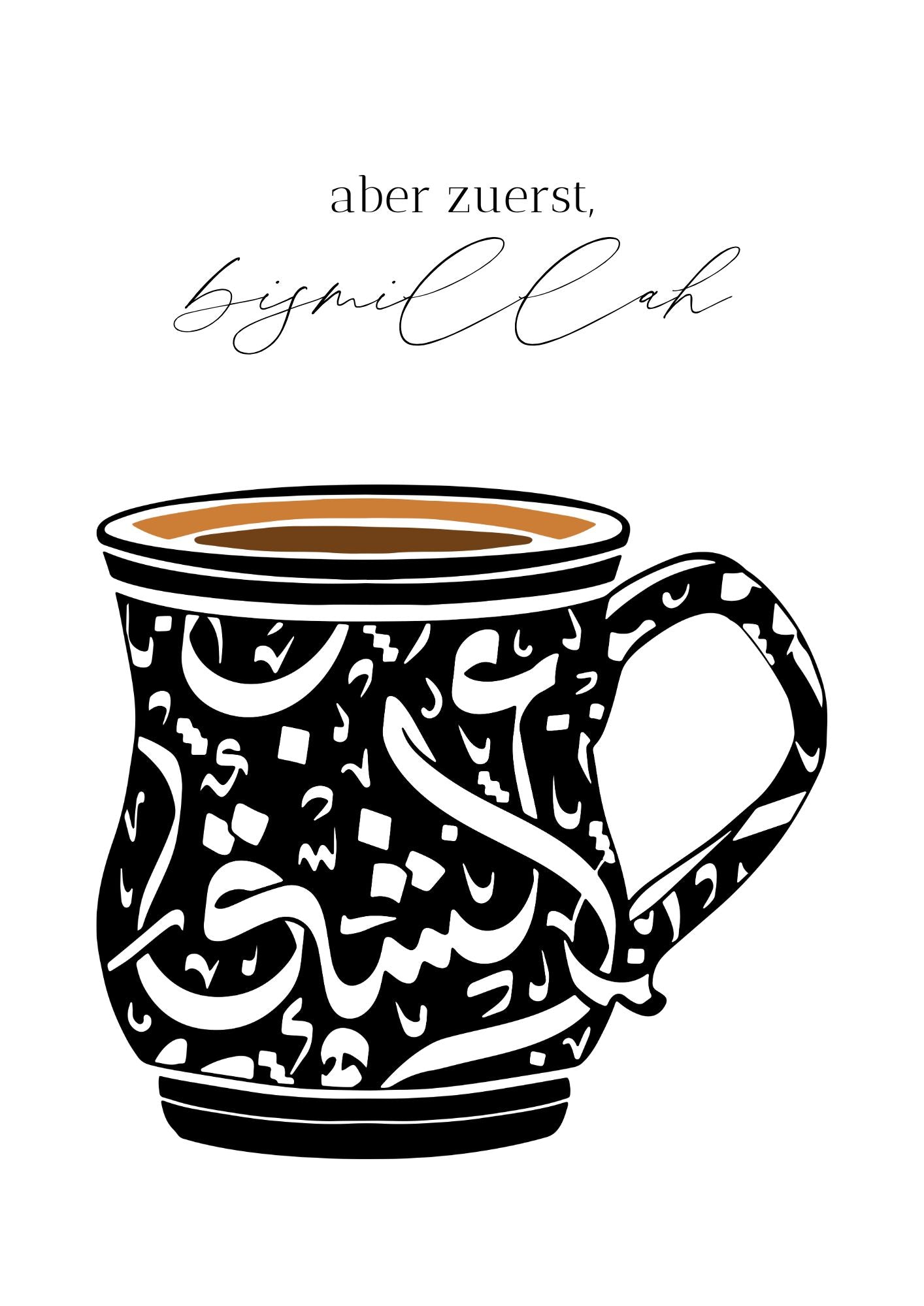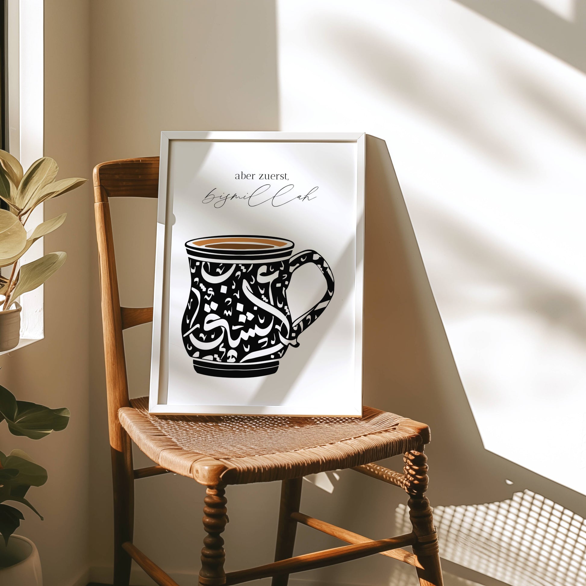 Dieses Küchenposter mit dem Zitat 'aber zuerst bismillah' ist perfekt geeignet als Dekoration für Dein Eigenheim oder auch als Geschenk für Deine Liebsten.