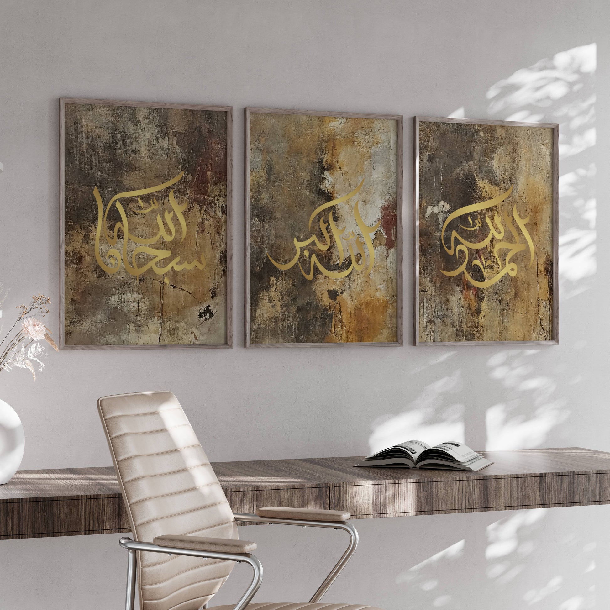 Ein abstraktes Posterset mit Subhanallah, Alhamdulillah und Allahu Akbar- das perfekte Trio, um kahle Wände zu schmücken und dem Eigenheim islamische Werte zu verpassen.