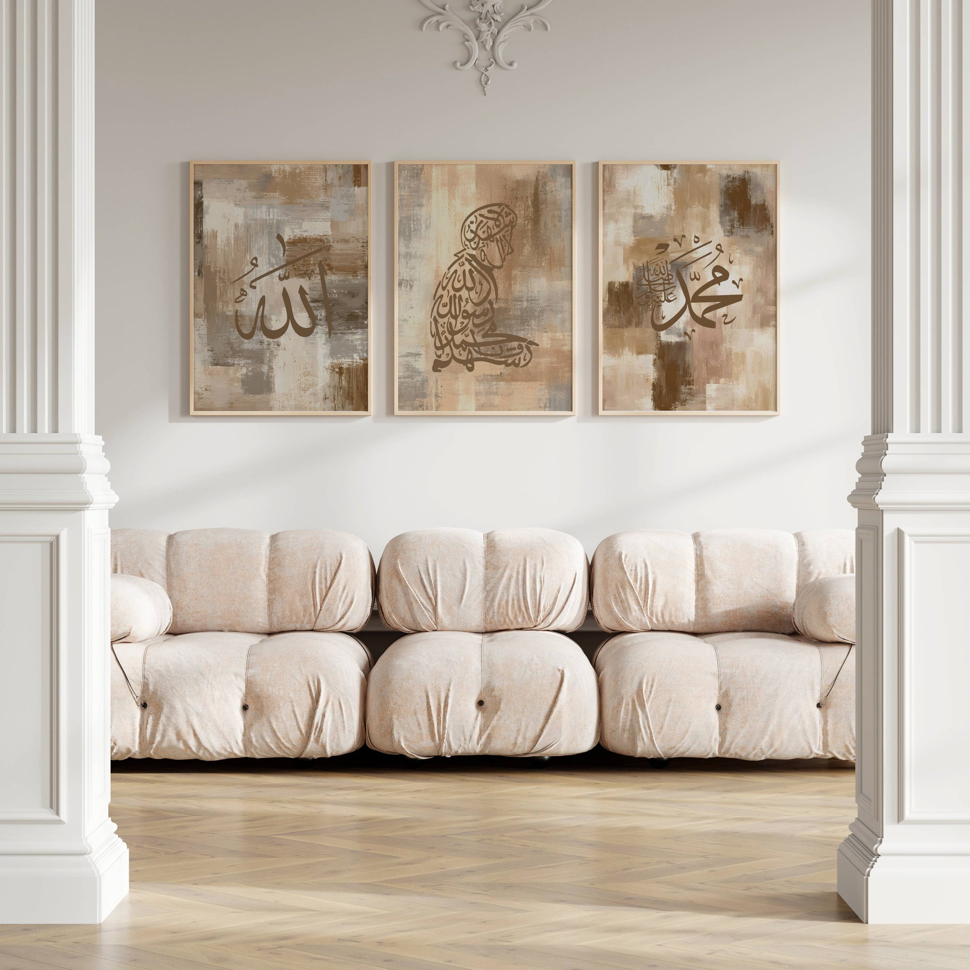 Ein islamisches Posterset in Braun, welches kahle Wände schmückt und dem Eigenheim islamische Werte verpasst. Dieses muslimische Wandbilder Set ist auch ein einzigartiges Geschenk - Du könntest Deine beste Freundin zum Geburtstag damit überraschen und ihr eine Freude bereiten. Du kannst es auch perfekt als Einzugsgeschenk für Deine Cousine, Schwester, usw. nutzen.