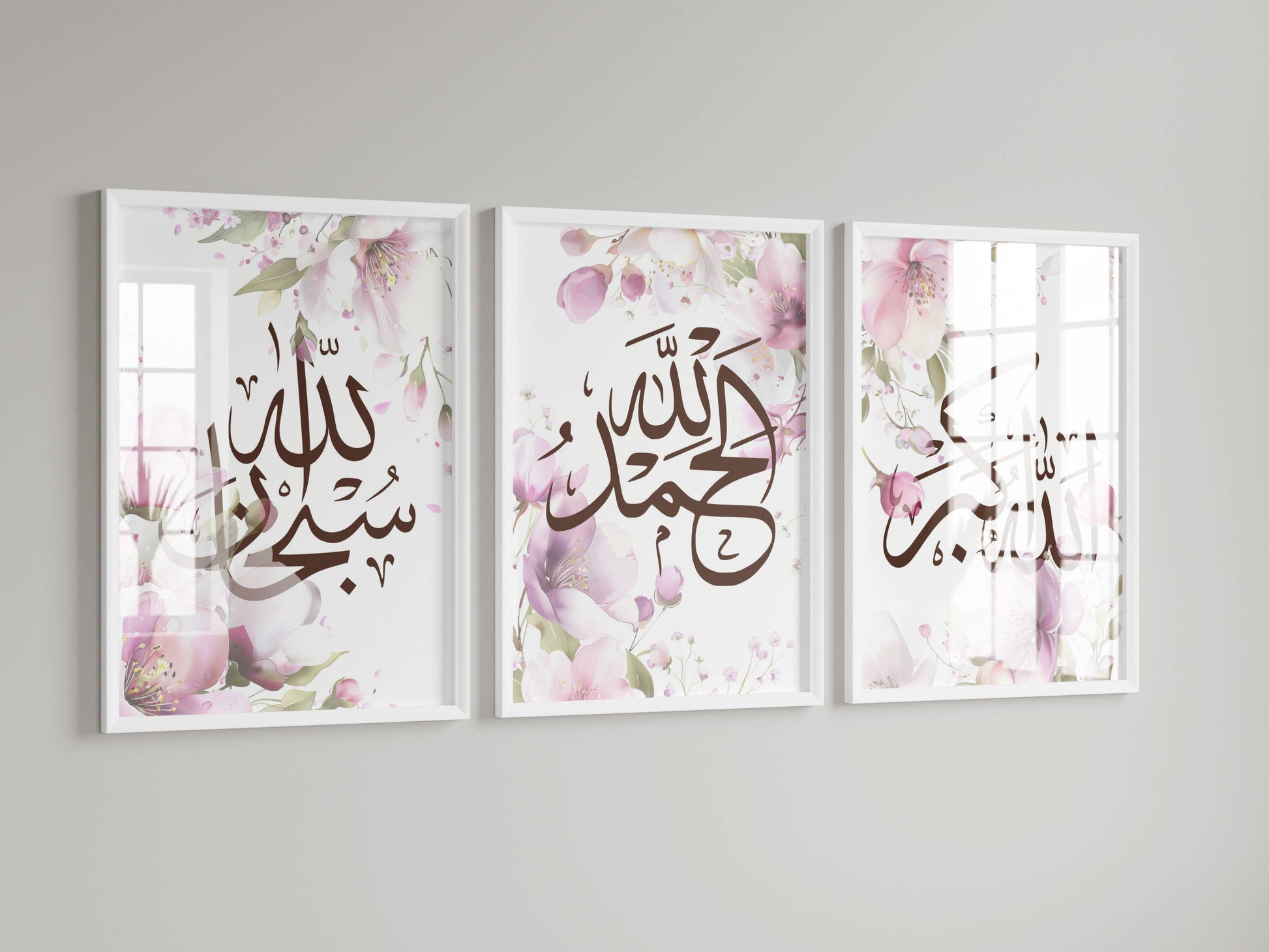 Ein florales Posterset mit Subhanallah, Alhamdulillah und Allahu Akbar- das perfekte Trio, um kahle Wände zu schmücken und dem Eigenheim islamische Werte zu verpassen.
