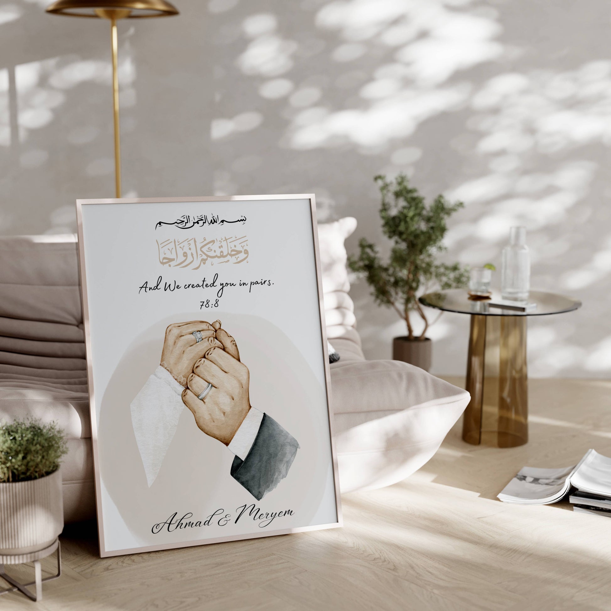 Du wurdest von Deinen Liebsten zur standesamtlichen Trauung eingeladen und benötigst ein bedeutungsvolles Geschenk? Dieses islamische Händeposter mit Personalisierung ist perfekt dafür geeignet und wird immer ein Eye-Catcher bleiben. Du kannst es auch als Deko für Dein Zuhause nutzen.