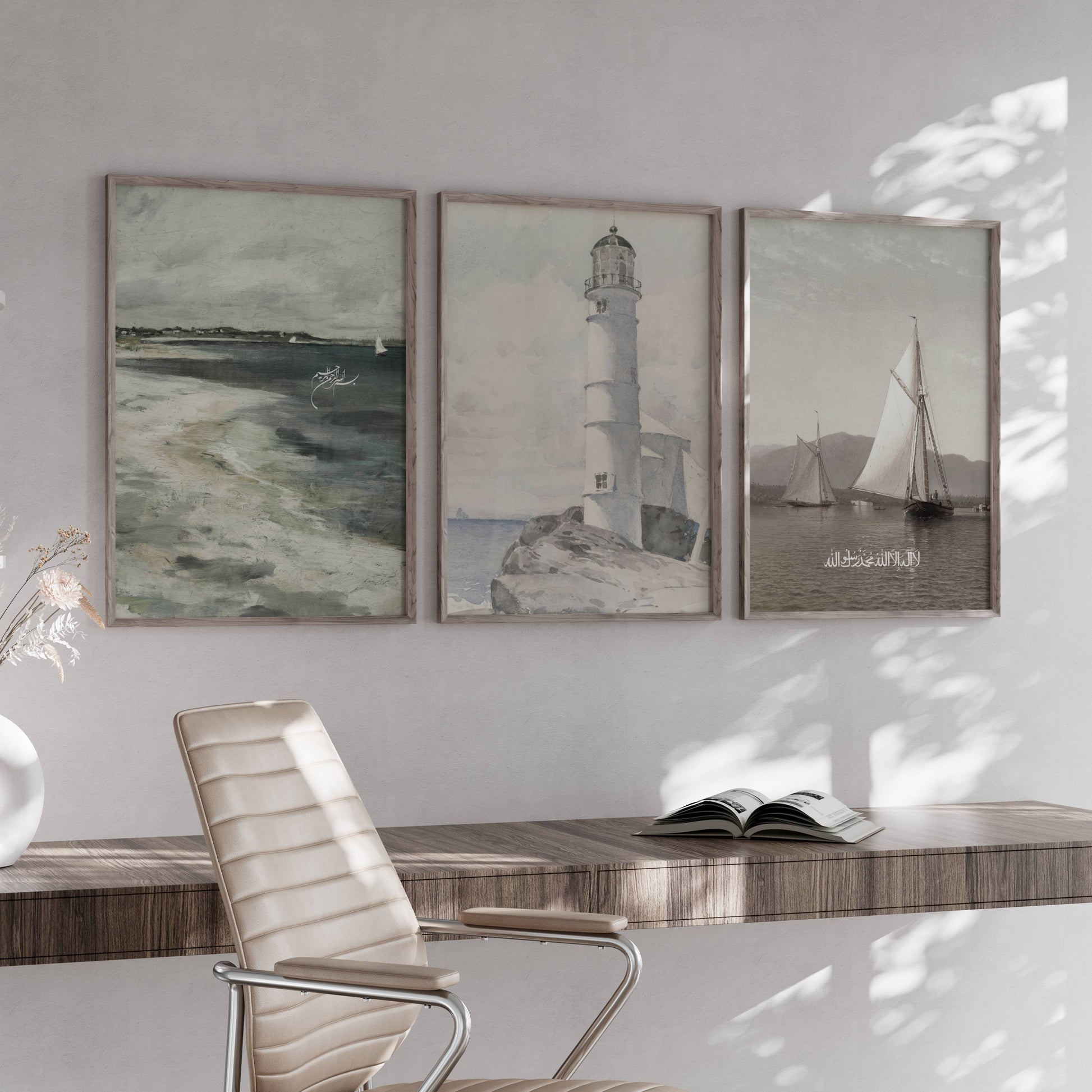 Ein abstraktes 3er Posterset mit der Basmala und Tawhid - das perfekte Trio, um kahle Wände zu schmücken und mit islamischem Stil zu bedecken.