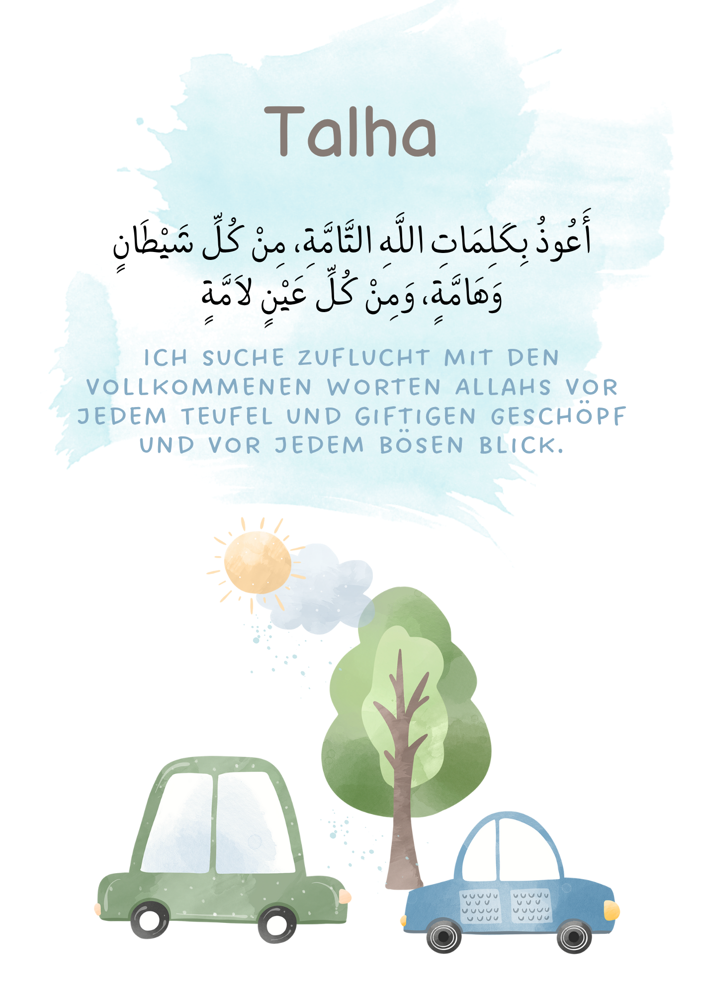 Personalisiertes Poster mit Schutzdua und Autos