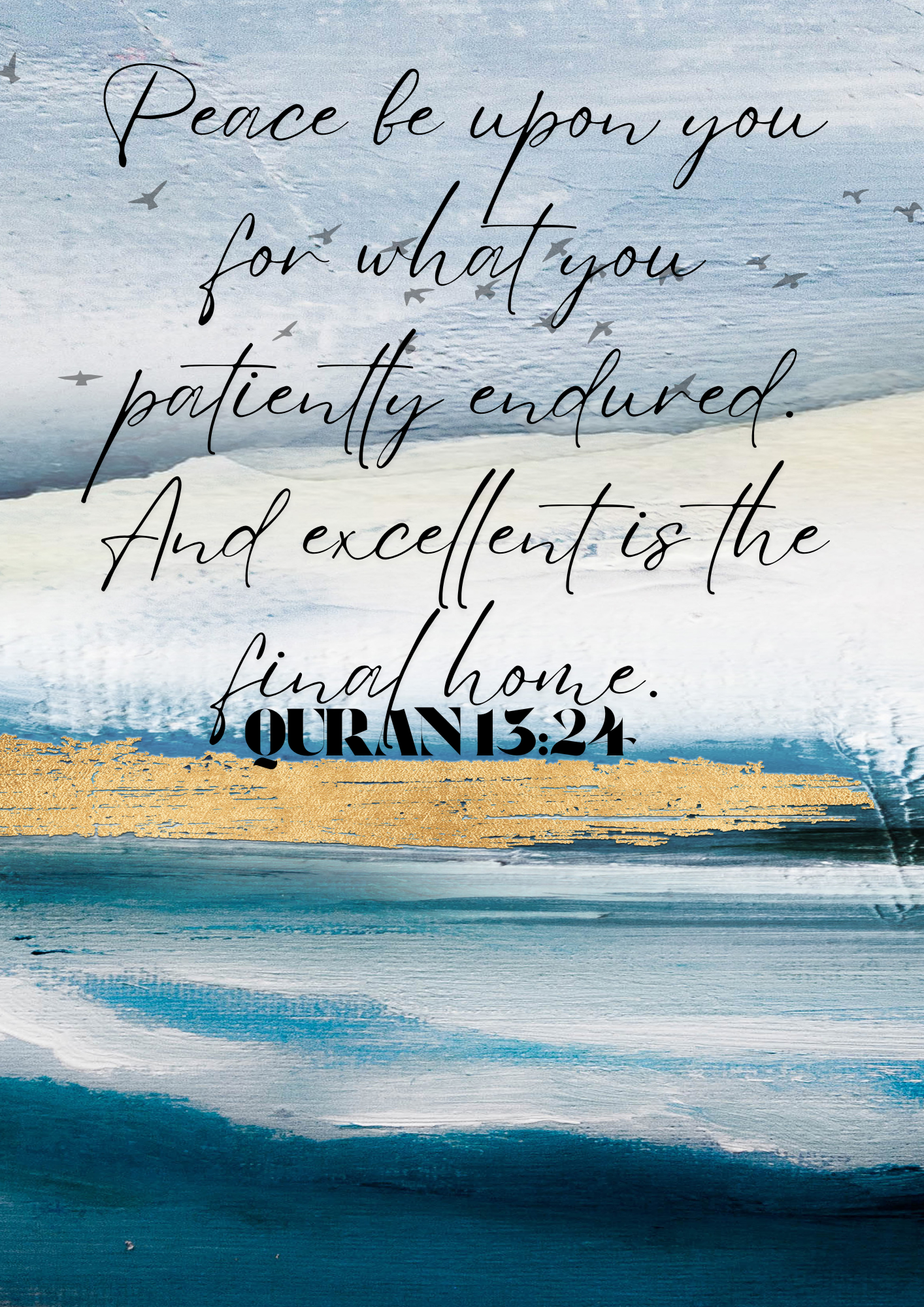 Ein abstraktes Posterset mit der Palästina Flagge und der Koran Ayah 'Peace be upon you for what you patiently endured. And excellent is the final home.' als Ergänzung für das Eigenheim oder auch als Geschenk für die Liebsten.